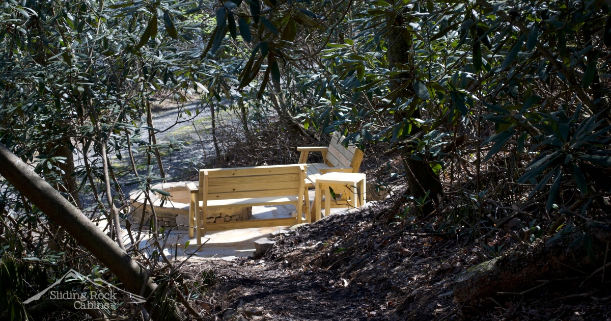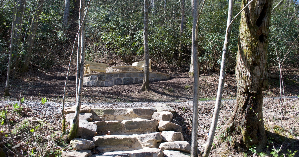 - Walking path from the cabin down to the Ellijay River